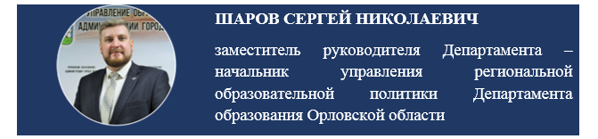 Шаров С. Н., заместитель руководителя Департамента – начальник управления региональной образовательной политики Департамента образования Орловской области,